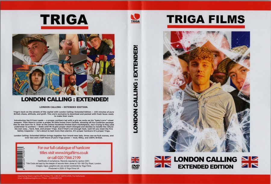 Discover the raw unfiltered intensity of Triga Films in London Calling, a gritty dvd with real British lads in relentless action. This release again captures the authentic scally vibe Triga is famous for, with cocky northerners and hung opportunists. The cast features Joe D, a cocky Leeds lad with a massive grin-worthy tool, alongside Lucian, a fit Carlisle brat flaunting his thick Cumbrian pride. The action gets kinky when online marketplace seller Jay hawks used underwear to broke buyer Mr. B, leading to a hardcore payment in kind refund. Brace yourself also for a fire safety inspector who inspects far more than alarms in a pulse-pounding roleplay scene. If you love chav lads, authentic British accents, and no-holds-barred bareback sex, London Calling: Extended Edition is a must-have! Cast: Joe D, Lucian, Mr B, Others
